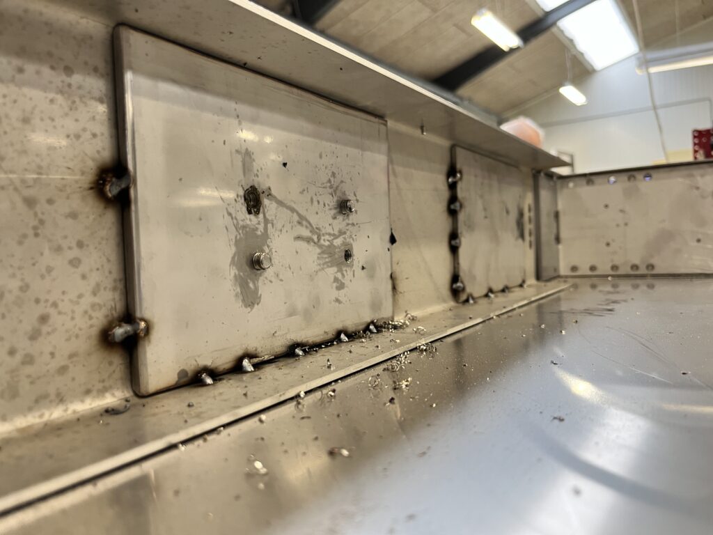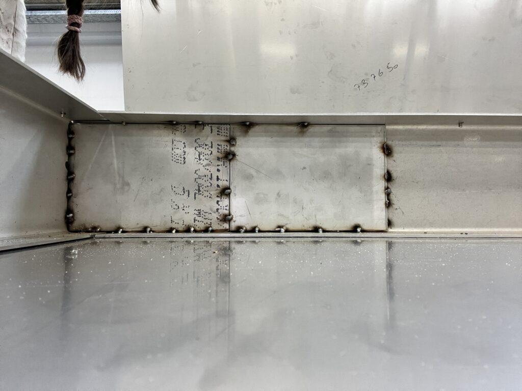 En dør af den størrelse og i den udførelse vejer næsten et ton, og for at sikre, at den kan holde form og funktionalitet i så mange år, er konstruktionen forsynet med strategisk placerede forstærkninger. Det er en afgørende del af forklaringen på, at dørene har kunnet modstå både søgang, frost, fugt og den hårde trucktrafik i lastrummene i næsten to årtier.