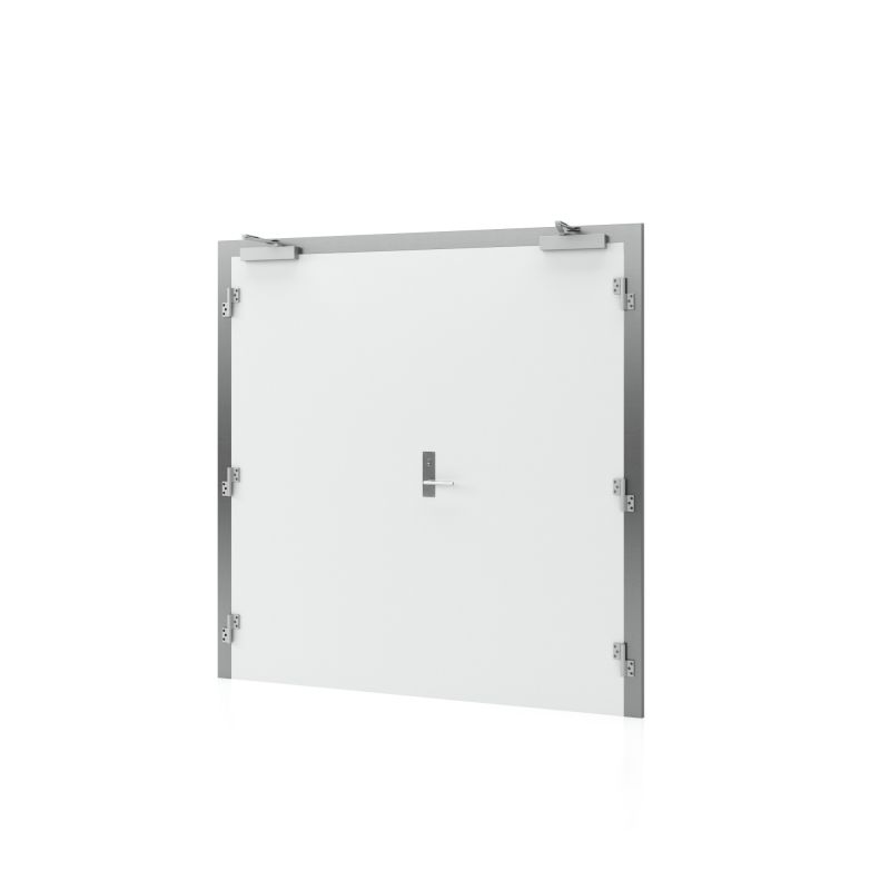 Dørenes stærke konstruktion sikrer, at de kan bruges i særligt udfordrende miljøer, som for eksempel mejeri og slagteri, og fordi dørene er isoleret med brandbatts og fireboard, bidrager de til et lavere energiforbrug. 2-fløjede branddøre er udstyret med kraftig dørpumpe med synkronbeslag på begge døre og produceres som standard med en galvaniseret smækpaskvil på det stående dørblad.