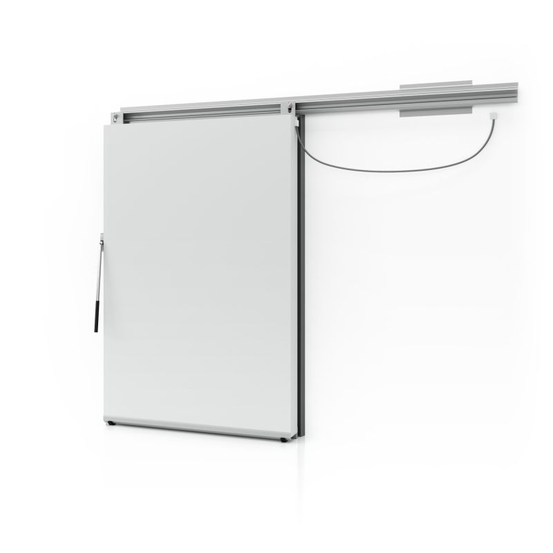 Døren er isoleret med 150 mm højisolerende skum, hvilket gør den til et ideelt valg til frostrum, hvor der stilles høje krav til fødevarekvalitet, holdbarhed og hygiejne.