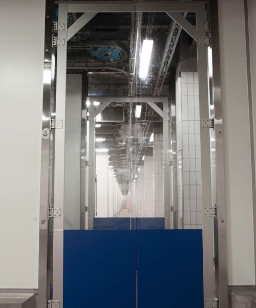 Med en polycarbonatsvingdør fra DAN-doors får I en effektiv og robust løsning til at sikre et smidigt work flow og høj effektivitet i områder med meget trafik. Dørene er vedligeholdelsesfrie og udstyret med levnedsmiddelgodkendte tætninger, som gør dem skræddersyet til brug i områder med høje hygiejnekrav, som for eksempel i levnedsmiddel- og fødevareindustrien samt supermarkeder.